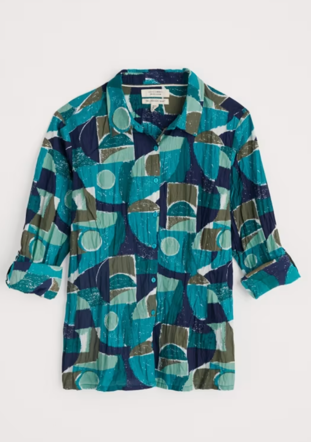 Our Larissa Shirt is a year-round favourite. Made from the softest organic cotton with a casual crinkled appearance, the beauty of this shirt is that it doesn’t need ironing – just wash and twist to keep the crinkle. This semi-fitted style is easy-to-style and comfortable, with long sleeves and button loops so you can roll up the cuffs to change your look. Each season, it showcases some of our most-loved prints, created by our talented textile designers.